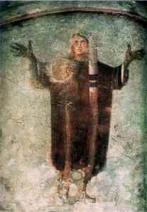 Woman in prayer: catacomb of St. Priscilla, Rome, 3rd century. Click to visit.